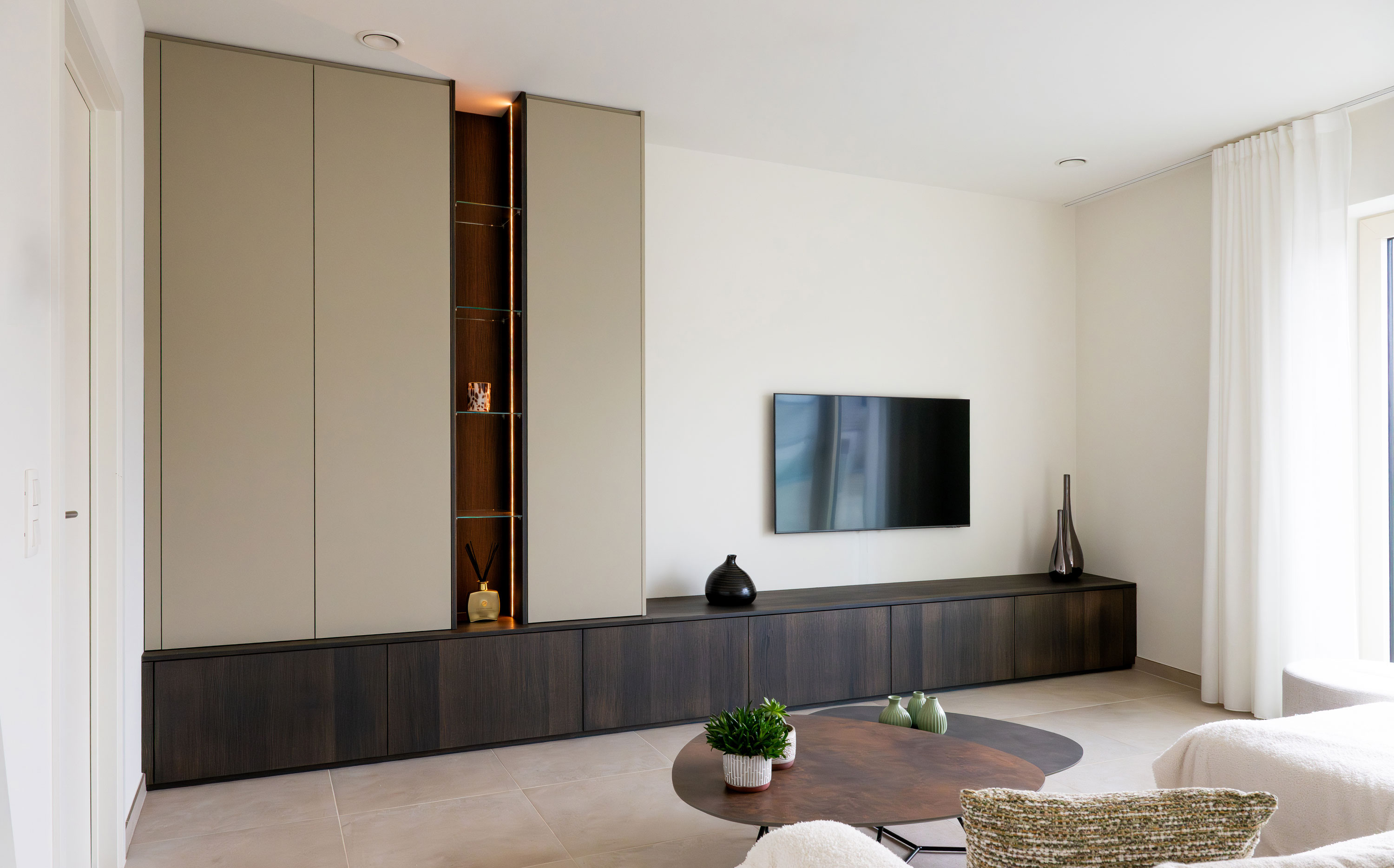 Zeker. Naast renovaties verzorgen wij ook de volledige inrichting van nieuwbouwwoningen, van keuken en badkamer tot dressings en maatkasten, volledig op maat en afgestemd op jouw woning en stijl.