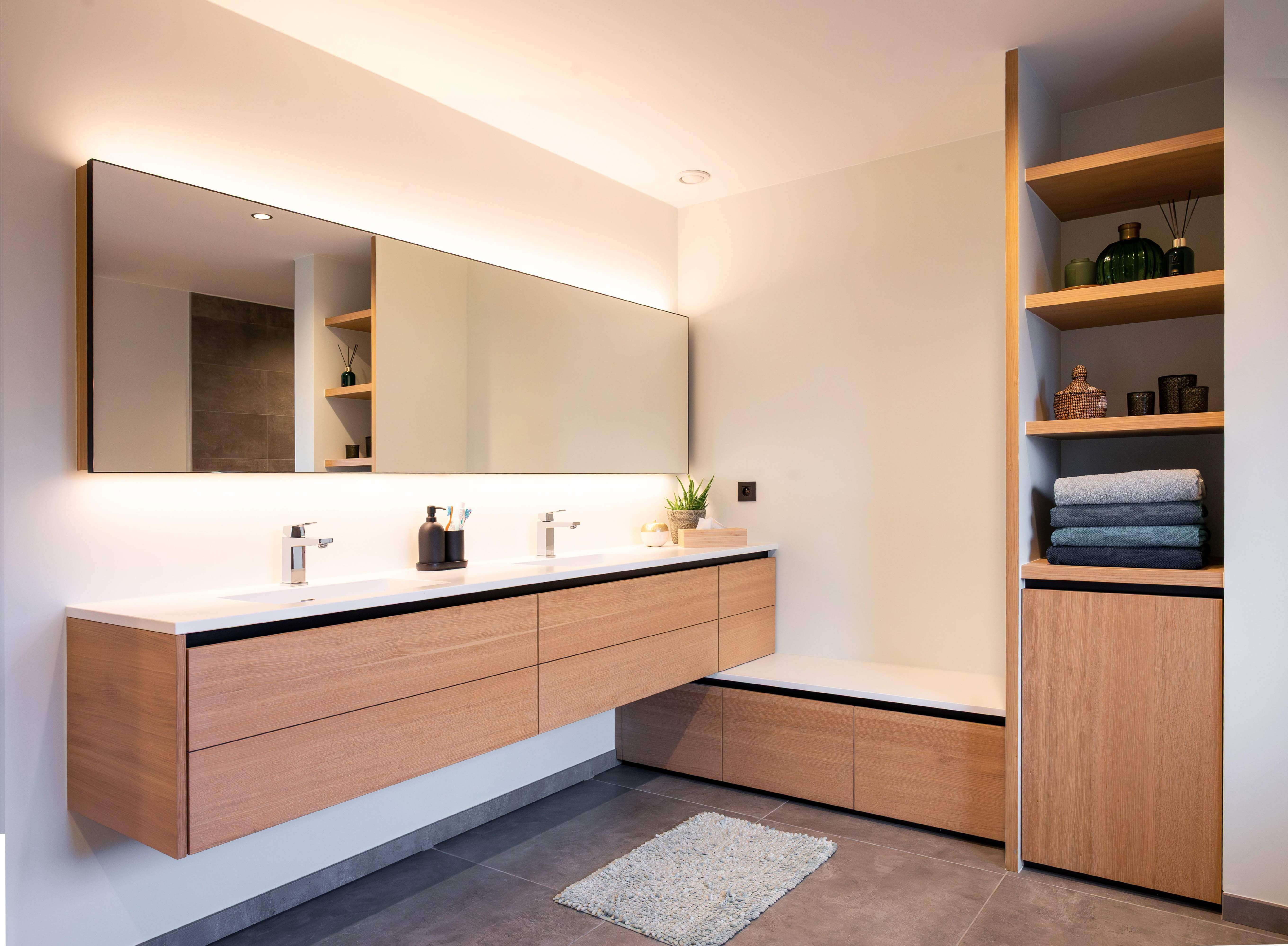 Wandmeubel met geïntegreerde verlichting, volledig op maat van de klant.