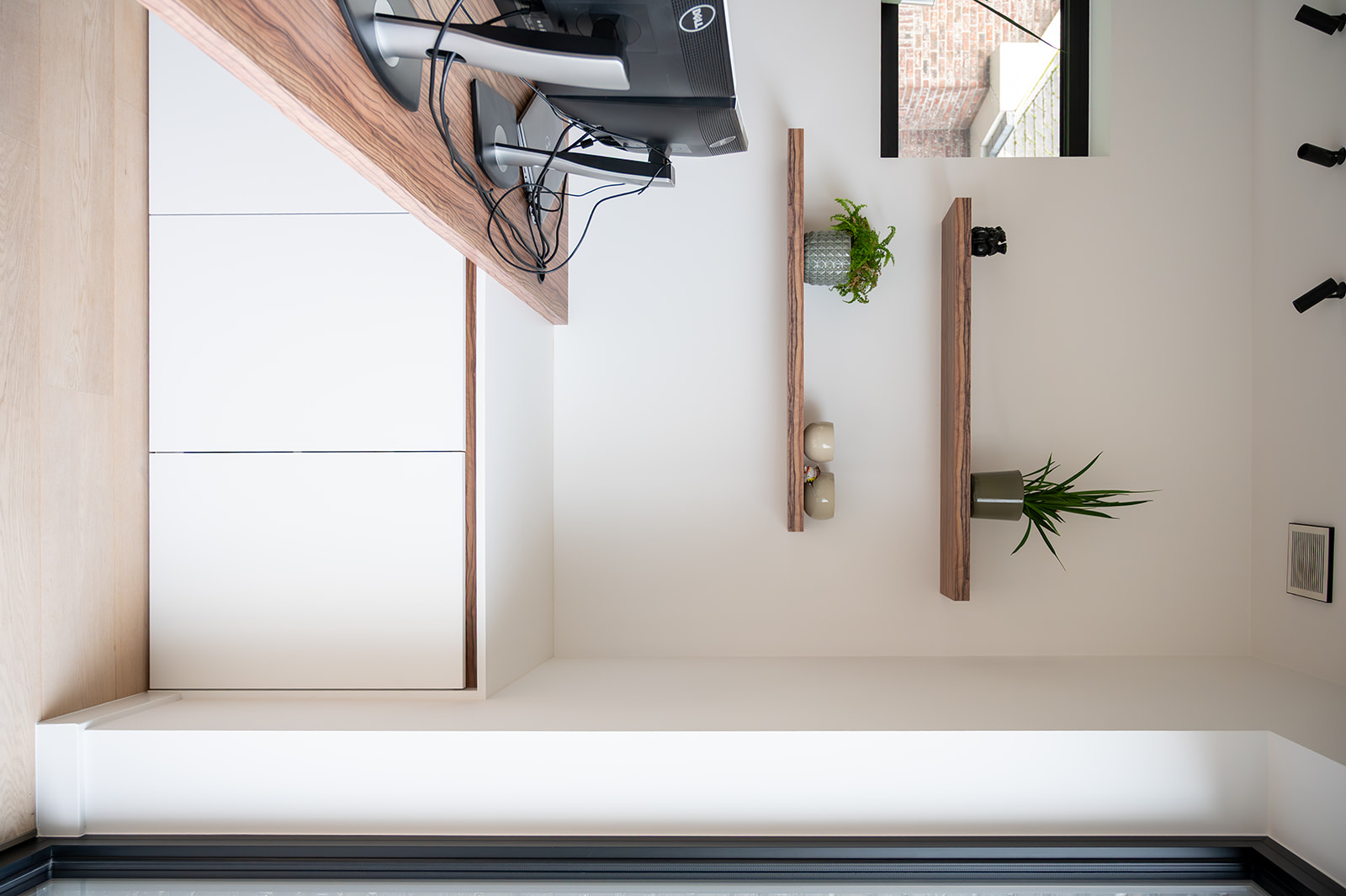 Meubilair, vloeren, wanden, deuren en alle afwerkingselementen: we nemen elke stap in handen en zorgen dat alles naadloos op elkaar aansluit.